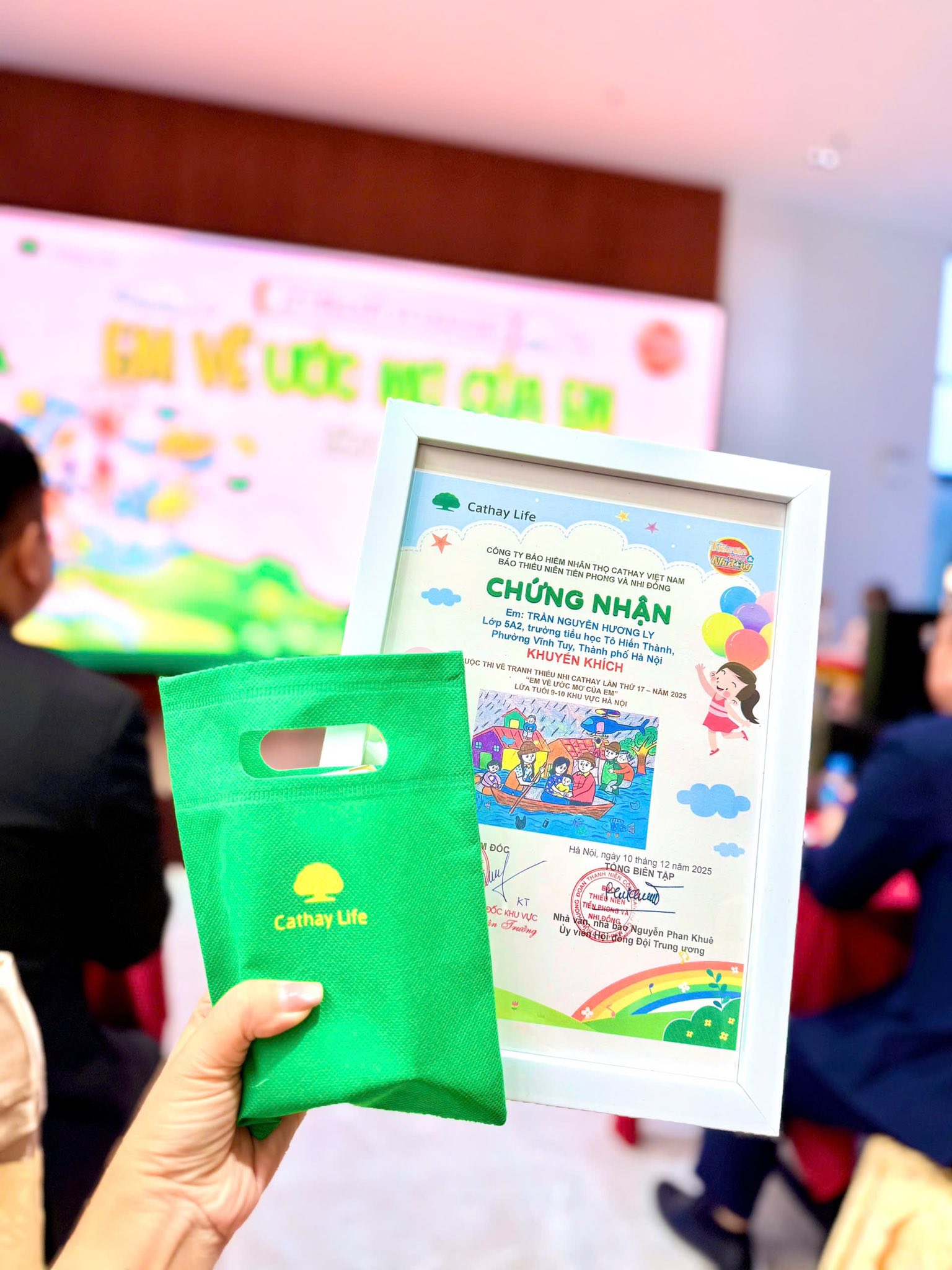 TRẦN NGUYỄN HƯƠNG LY – Lớp 5A2 đã đạt giải Khuyến khích cuộc thi vẽ tranh “Em vẽ ước mơ” lần thứ XVII do Công ty Bảo hiểm Nhân thọ Cathay phối hợp cùng Báo Thiếu niên Tiền phong và Nhi đồng tổ chức.